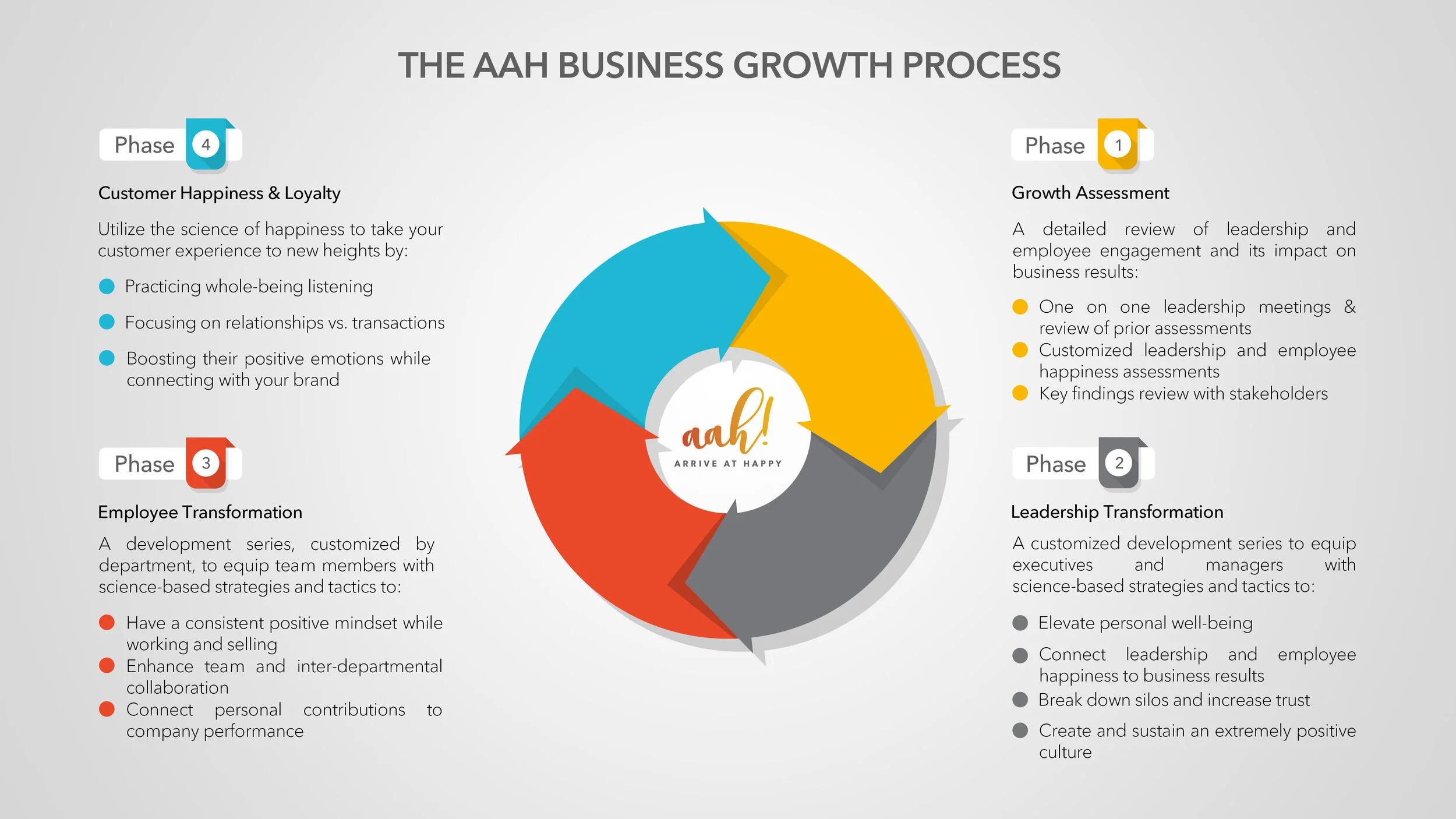 That is exactly why we set out to create a repeatable process that lets leaders create a culture of happiness that not only drives business growth but also changes lives – inside and outside the company.